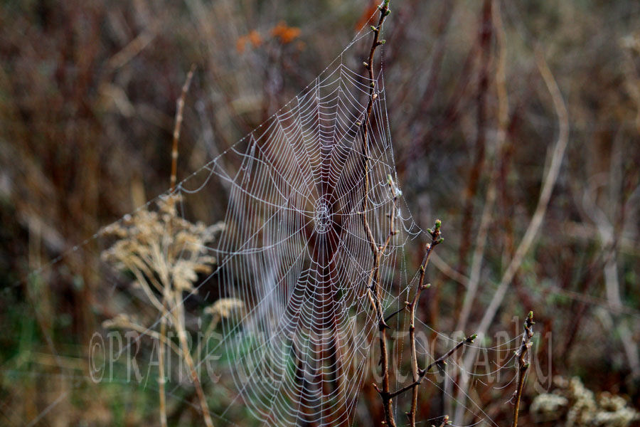 Early one morning, the Boys and I went to the pasture to look for Duke, who hadn’t come up with the rest of the horses. We found him, he was having a quiet private breakfast. However, we found more. Spider webs on the fence and in the bushes. You know how small a barb is on a barbwire fence so you will be amazed to see how small some of the webs are The spider web photos are in the Gallery.