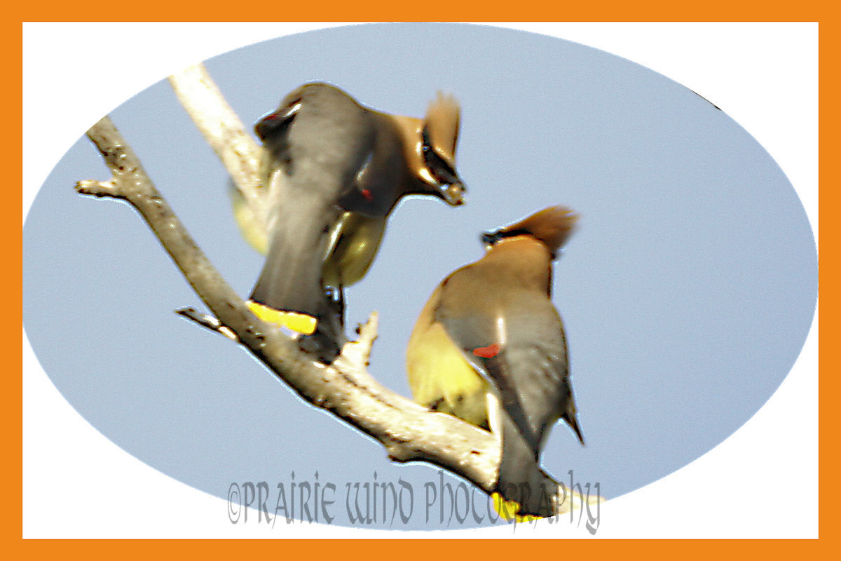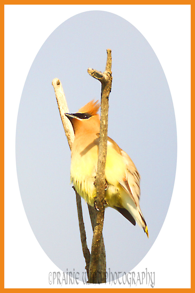 Each morning, early, my boys and I leave for our walk. Each walk is an adventure and we never know what we will see. A portion of the Red Fox Valley is our play ground. One morning the boys met a skunk. It was a smelly walk home. This morning we saw these wonderful Cedar Waxwings. I am getting a lot of use out of my bird books! And my new lens!