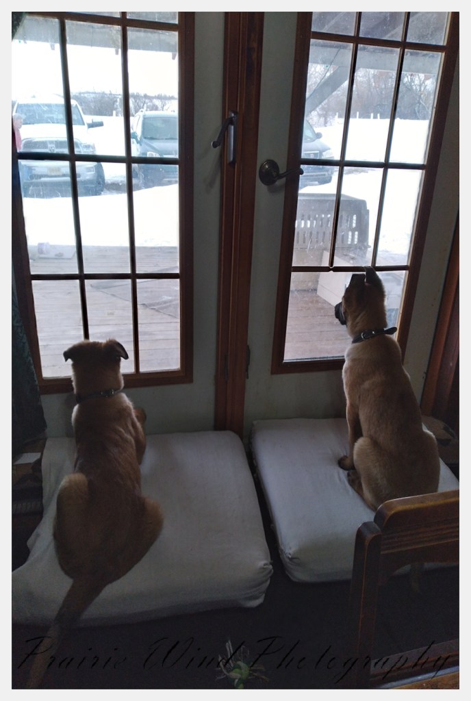 The weeks are flying by. Soon we will be March and soon Spring will be here. We had a little white visitor this week. A weasel has moved in. We haven’t seen many mice this winter and he is probably the reason. Chase seems to be able to tell when he is out and about. The weather has been unsettle this week, providing some awesome skies. Only February and we have some pretty huge snow banks. You’d think with all that snow it would be a lot of runoff but the experts say it will be a normal one for our region. Once again we have shots of the pups. They see a camera and seem to think they are the models. Which they usually are. I may gave caught a shot of a UFO. Enjoy. Click on the image to enlarge then on the right arrow to move thru the collection.