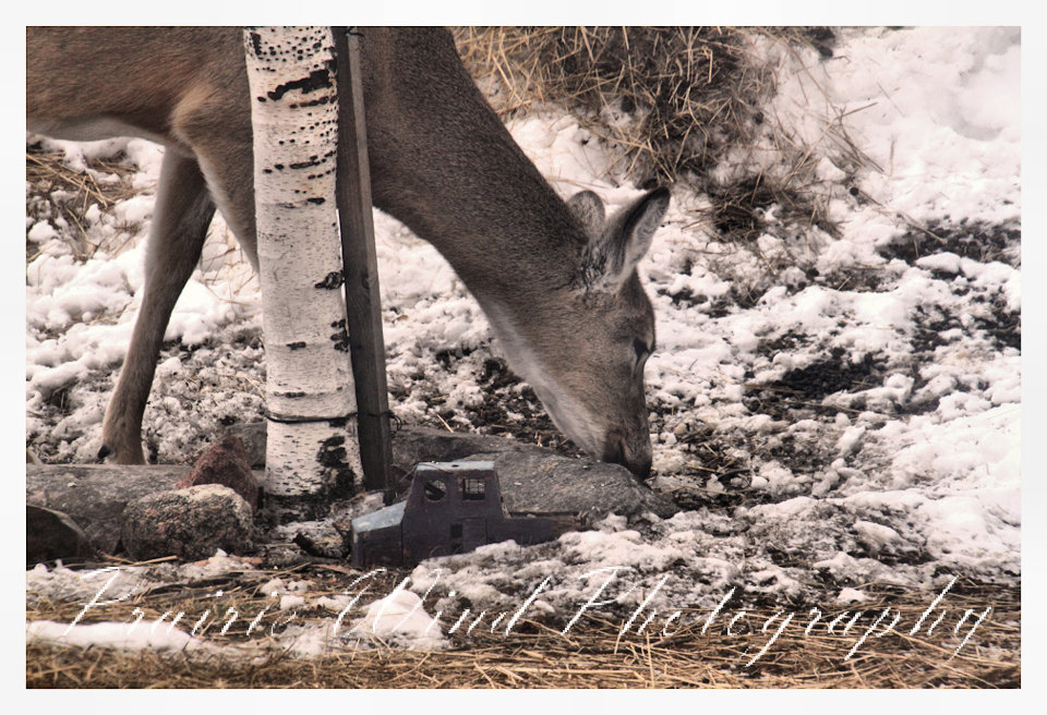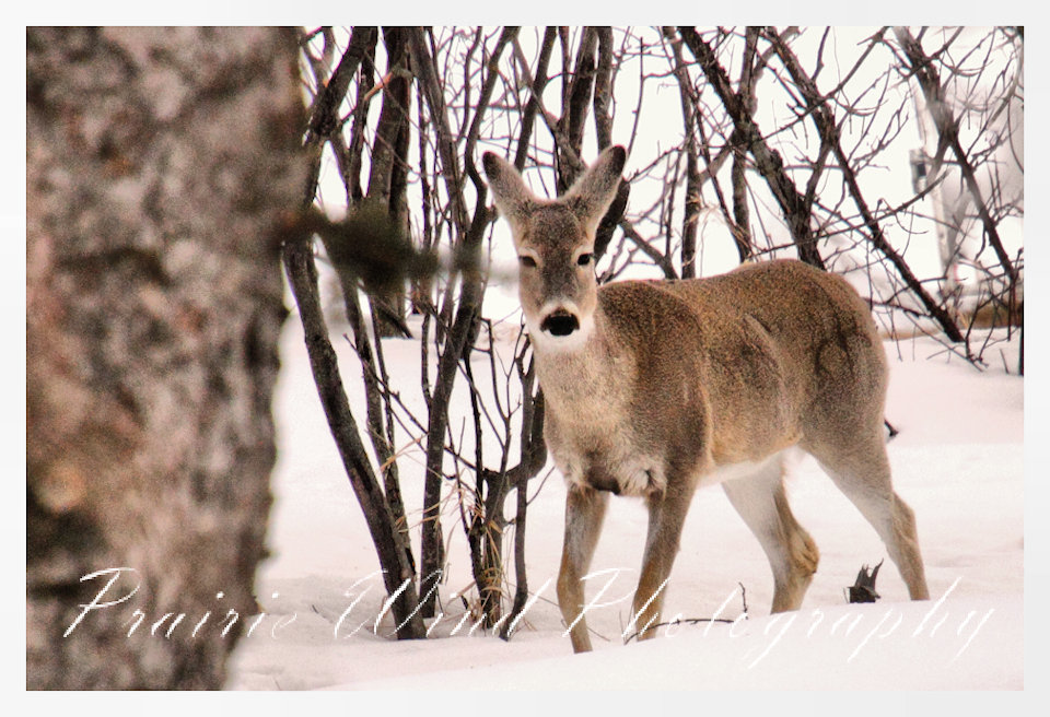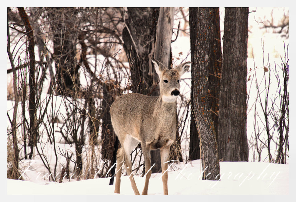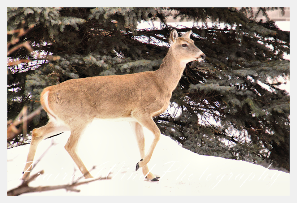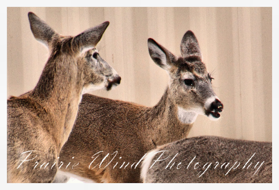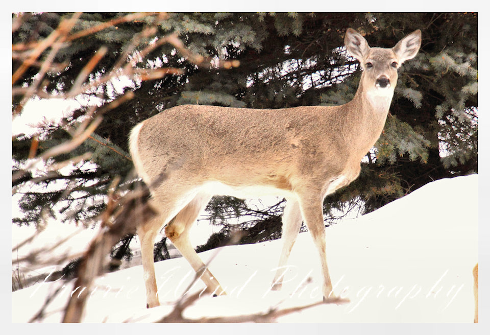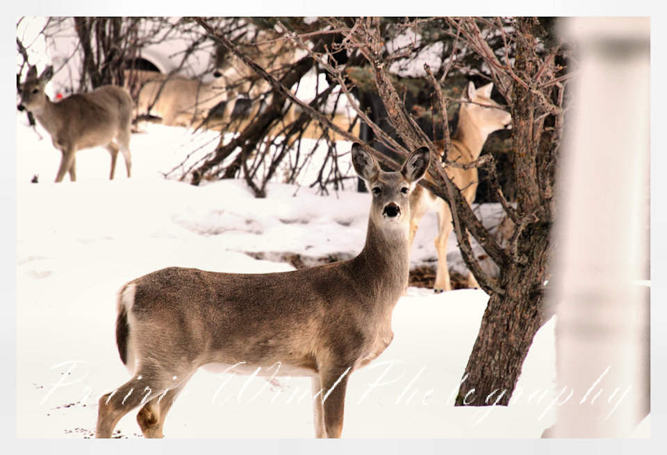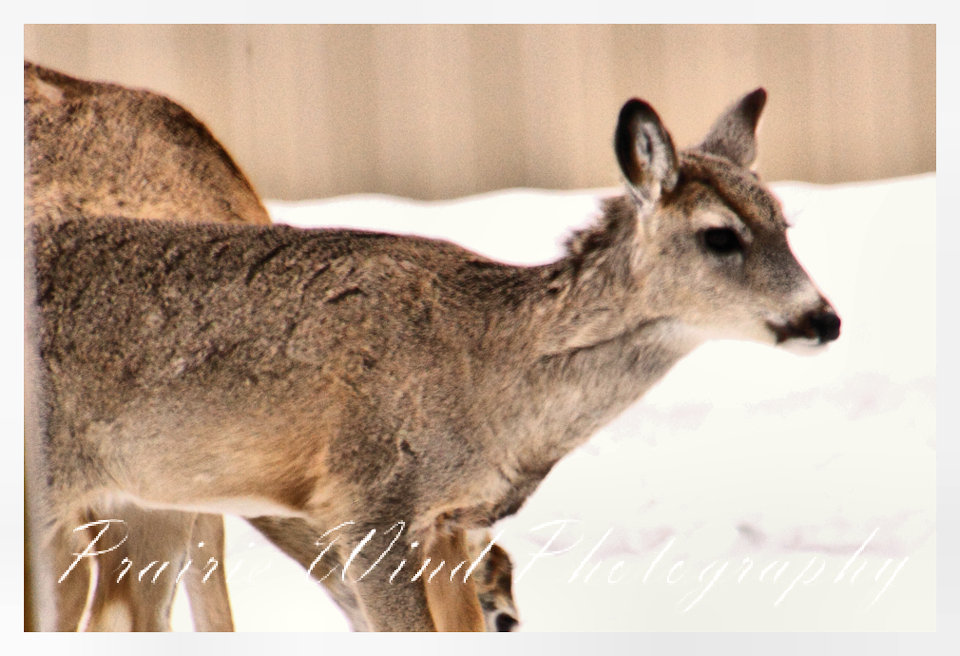 I had the privilege of seeing a herd of about 40 white tail deer. Spring is slowing arriving in my area and the deer are on the move. For awhile it was a pretty decent winter for them, then the snow started to pile up deep and hard. In some areas on hills the wind cleared the snow away and the deer were able to graze. I hope you enjoy these graceful animals.