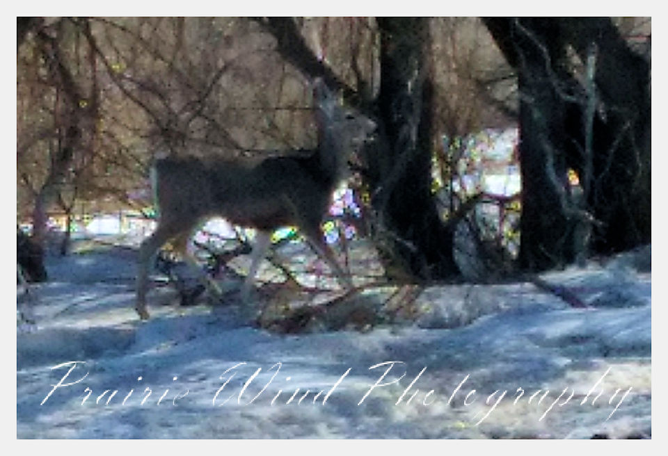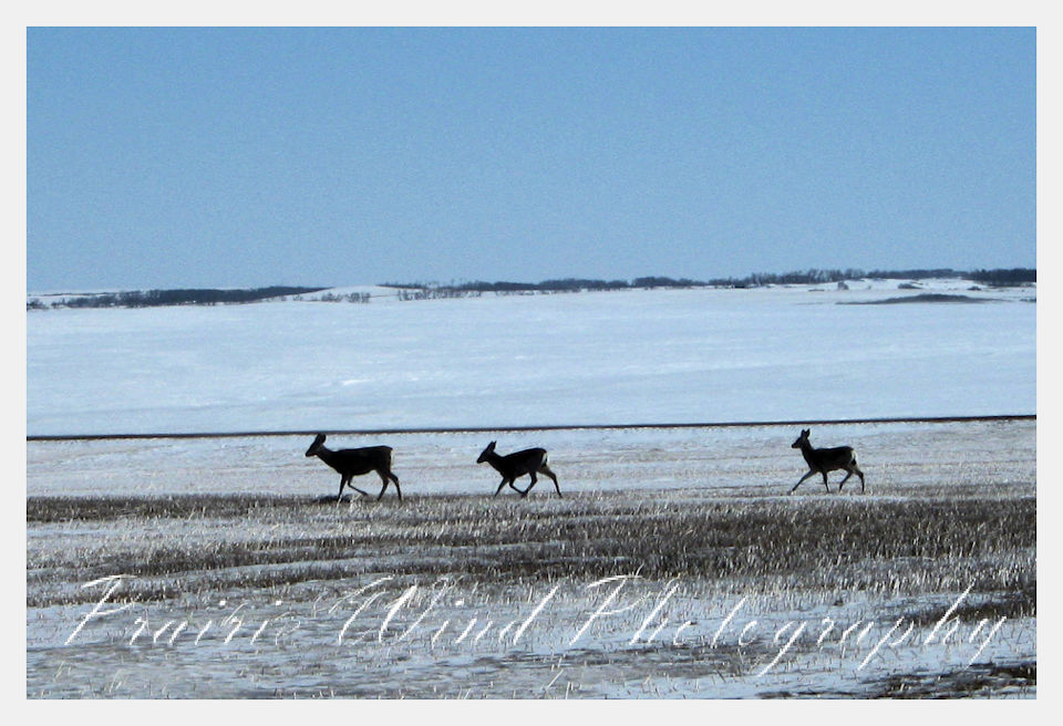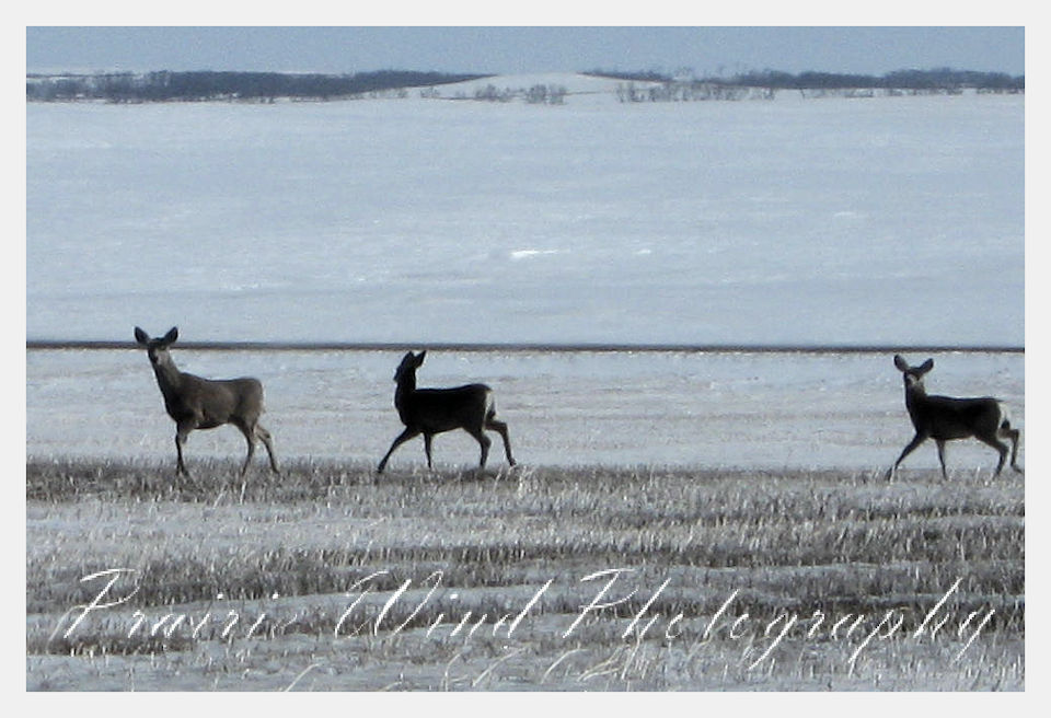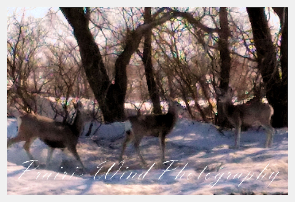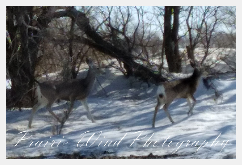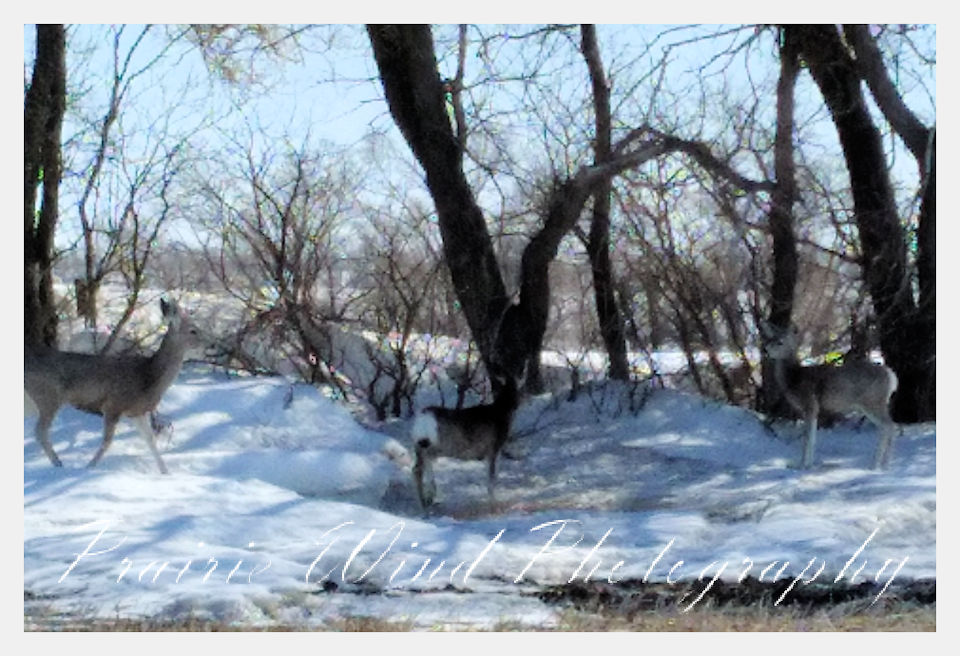 I had the privilege of seeing a herd of about 40 white tail deer. Spring is slowing arriving in my area and the deer are on the move. For awhile it was a pretty decent winter for them, then the snow started to pile up deep and hard. In some areas on hills the wind cleared the snow away and the deer were able to graze. I hope you enjoy these graceful animals.