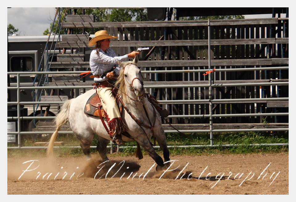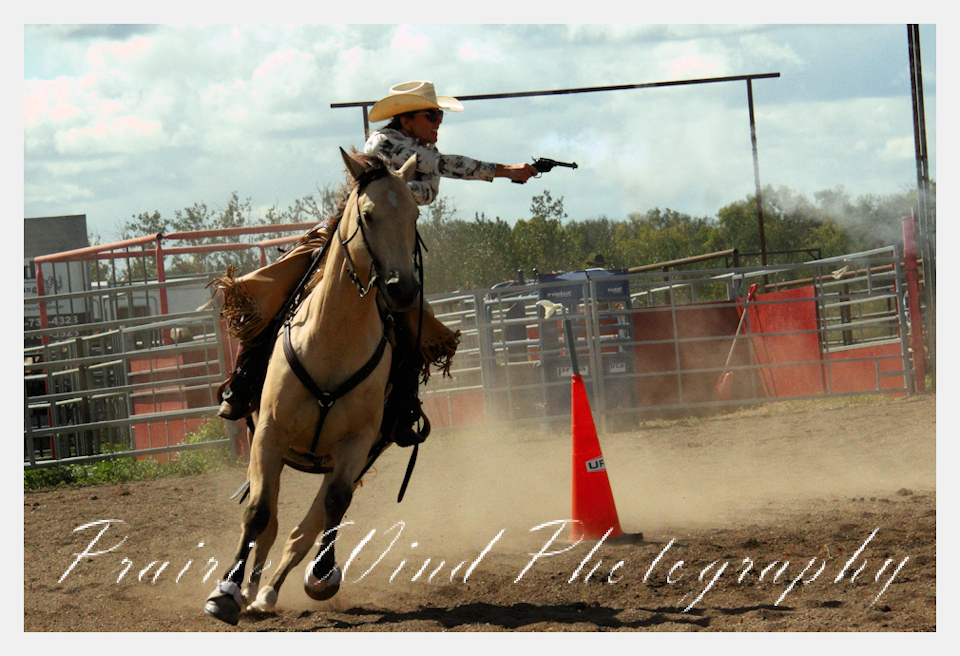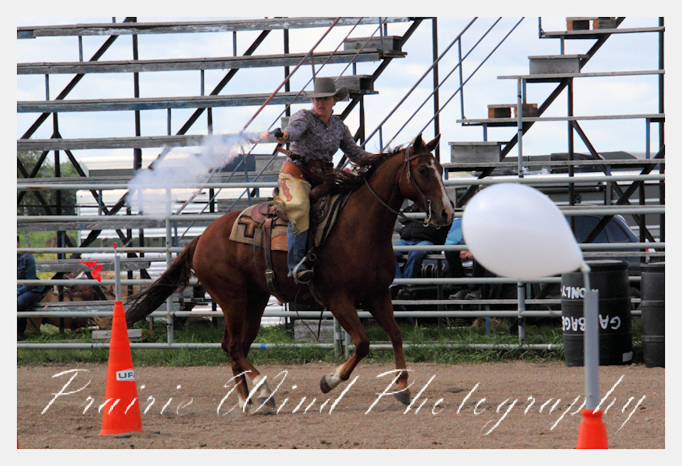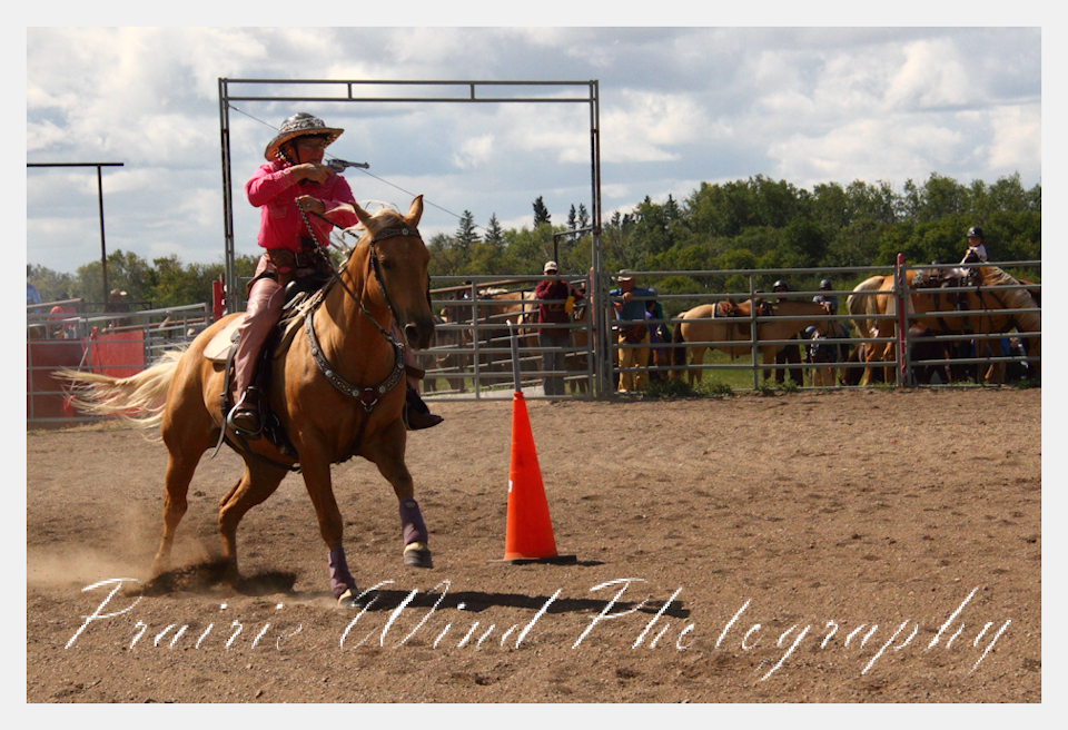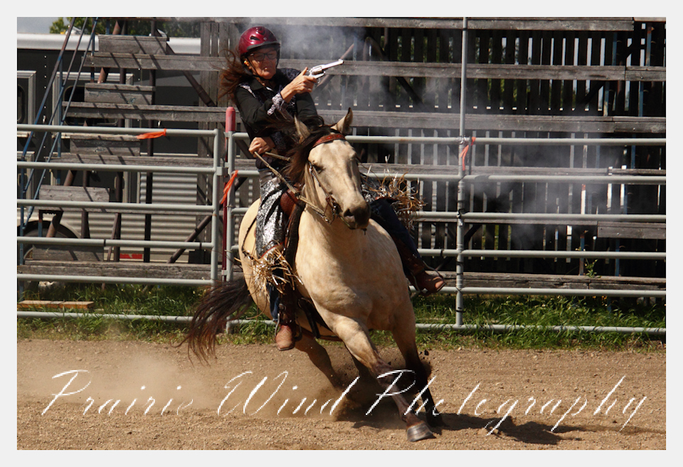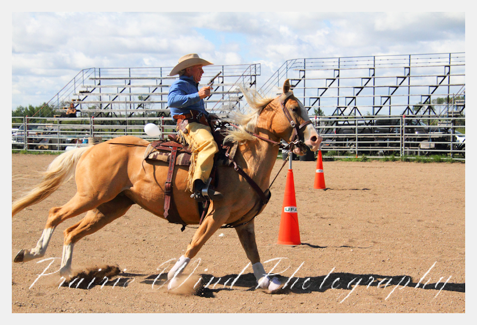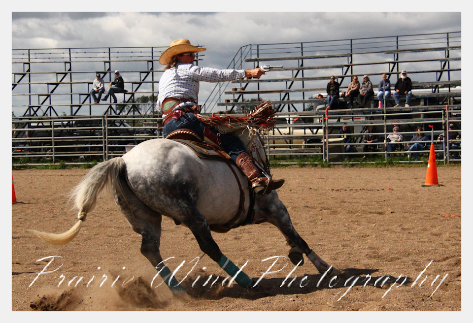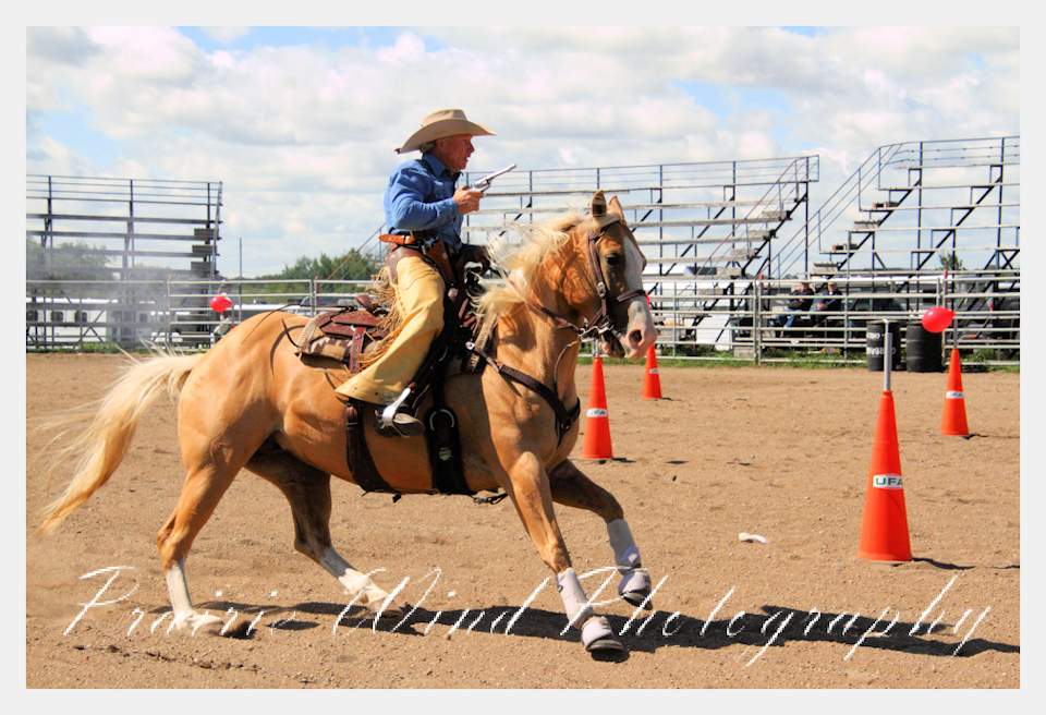 Can you pat your head, rub your tummy and recite a nursery rhyme? How about ride a horse through a designated pattern, and using blank ammunition in different styles of guns and shoot ten ballons. Fastest time wins. I spent a Saturday watching members of the Sask Mounted Shooters show how its done. Mounted shooting requires competitors to use four guns — 2 single-action revolvers, 1 lever-action rifle chambered in pistol caliber, and 1 side-by-side double-barreled shotgun. I was only able to watch the revolver part of the program. It is a pretty fast action sport. Here are some shots from the morning.  Click on the image and then right click to see the complete image and move thru the gallery. Enjoy!