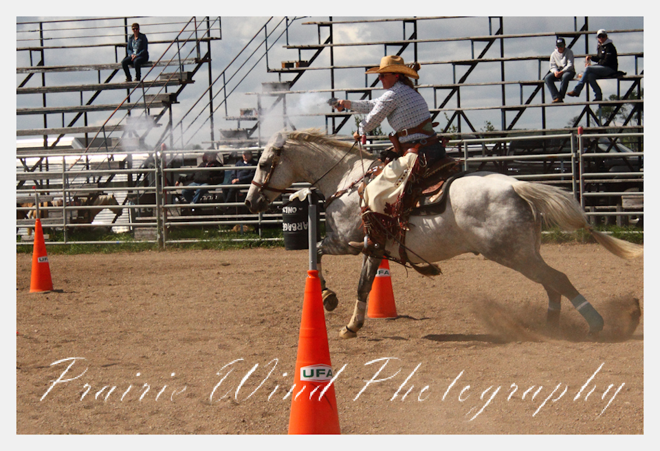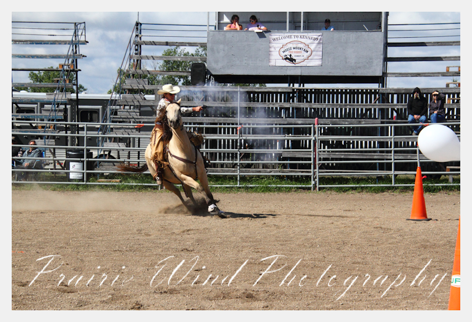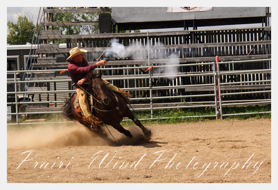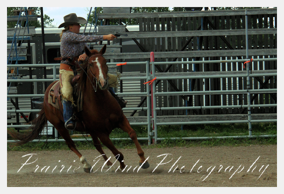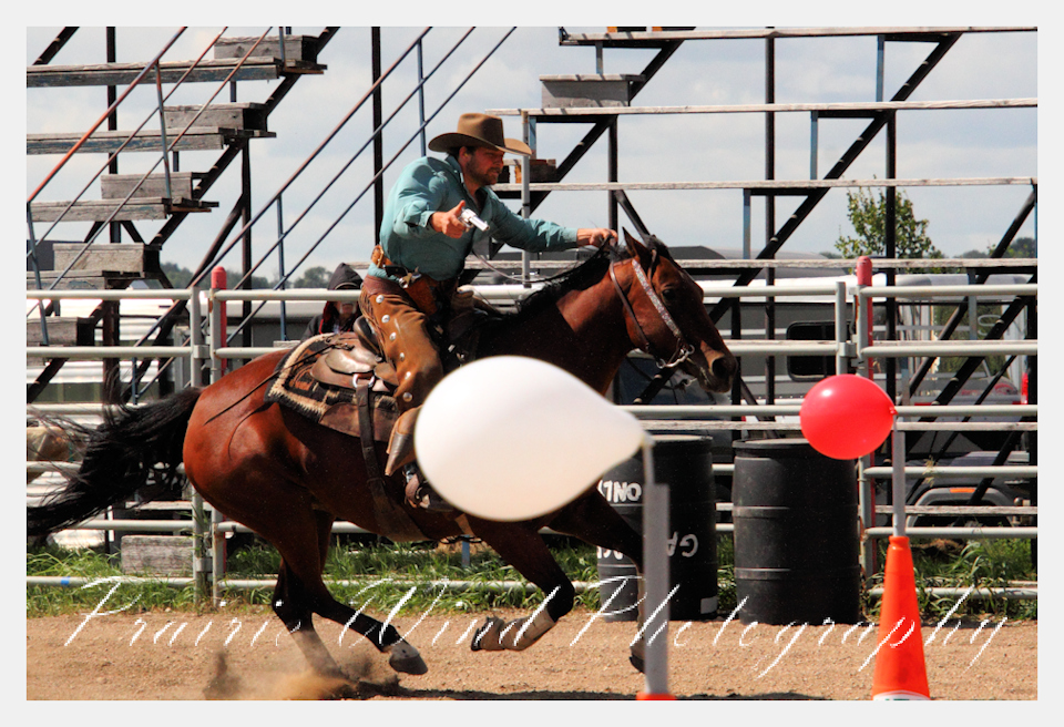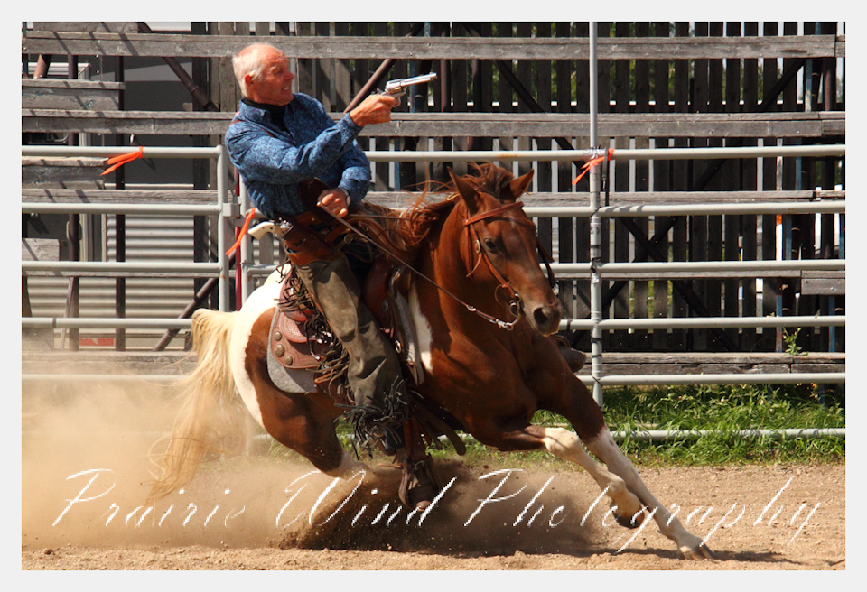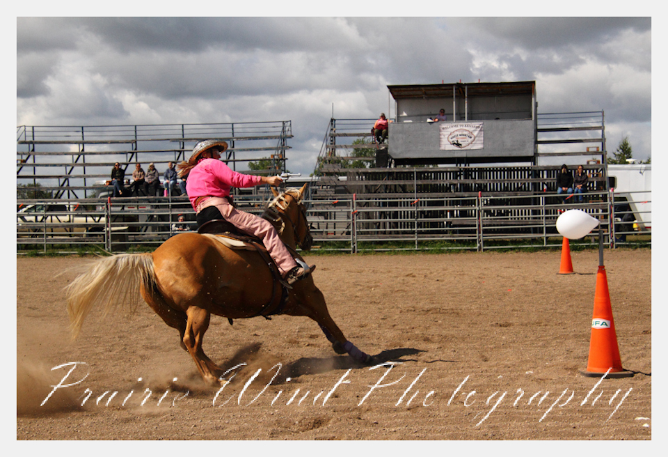 Can you pat your head, rub your tummy and recite a nursery rhyme? How about ride a horse through a designated pattern, and using blank ammunition in different styles of guns and shoot ten ballons. Fastest time wins. I spent a Saturday watching members of the Sask Mounted Shooters show how its done. Mounted shooting requires competitors to use four guns — 2 single-action revolvers, 1 lever-action rifle chambered in pistol caliber, and 1 side-by-side double-barreled shotgun. I was only able to watch the revolver part of the program. It is a pretty fast action sport. Here are some shots from the morning.  Click on the image and then right click to see the complete image and move thru the gallery. Enjoy!