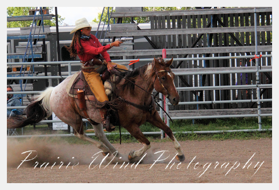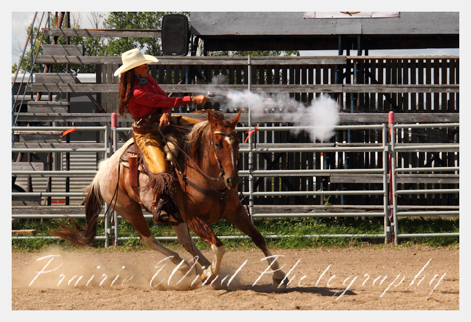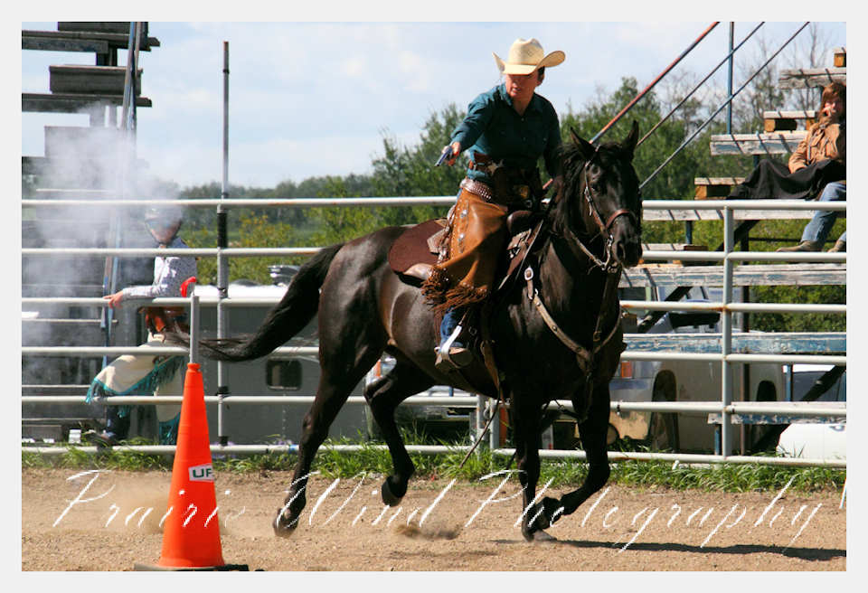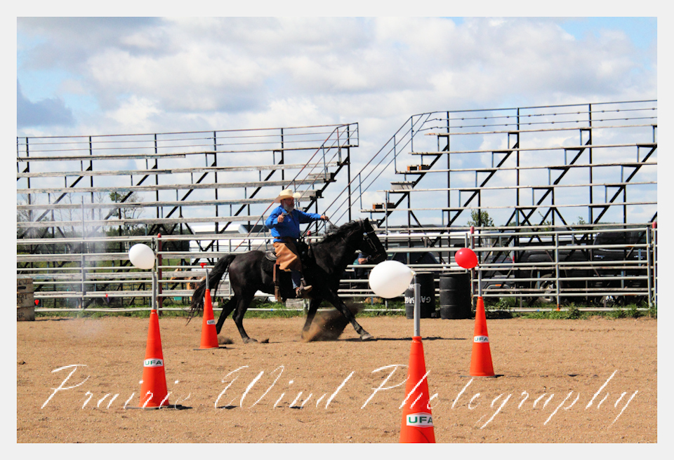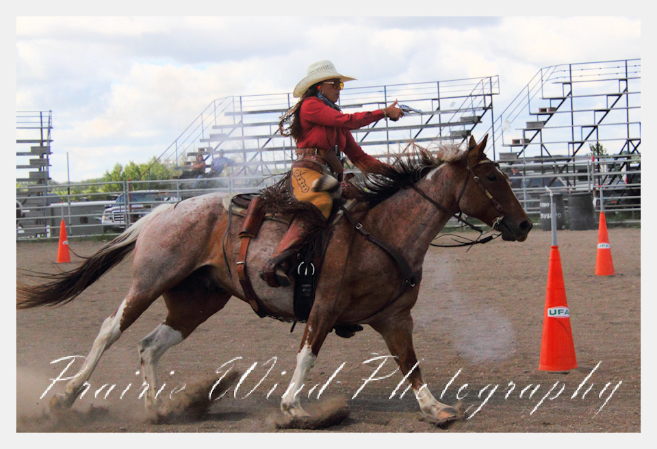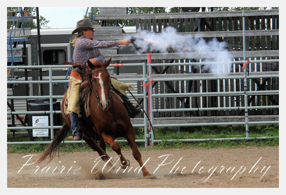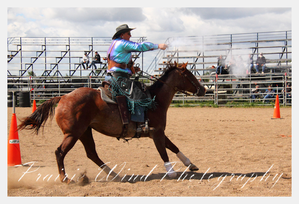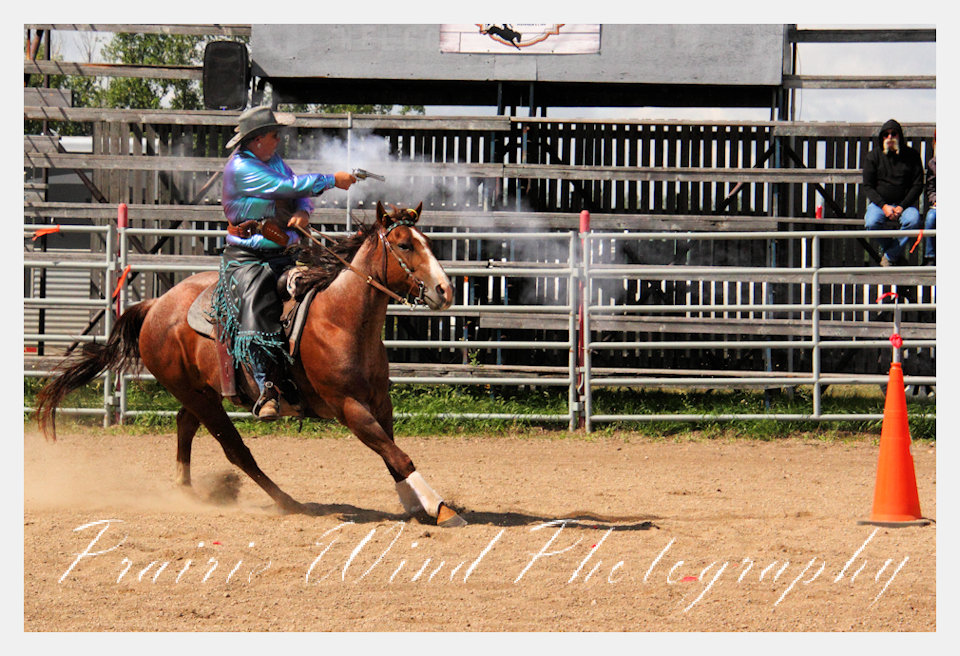 Can you pat your head, rub your tummy and recite a nursery rhyme? How about ride a horse through a designated pattern, and using blank ammunition in different styles of guns and shoot ten ballons. Fastest time wins. I spent a Saturday watching members of the Sask Mounted Shooters show how its done. Mounted shooting requires competitors to use four guns — 2 single-action revolvers, 1 lever-action rifle chambered in pistol caliber, and 1 side-by-side double-barreled shotgun. I was only able to watch the revolver part of the program. It is a pretty fast action sport. Here are some shots from the morning.  Click on the image and then right click to see the complete image and move thru the gallery. Enjoy!