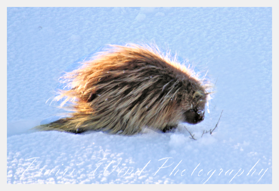 This week was a good week for photos. Mother Nature was very coopertive. We had a number of days of frost. I thought she’d forgotten us as other place were decorated with it but not us. I was out when it was dark and took a few with the flash. Just something different. We went on a road trip and the porcupine was in the ditch along the was I put one on Facebook and it has been well like. Hope you enjoy them. Click on the image and then right click to move thru the gallery.