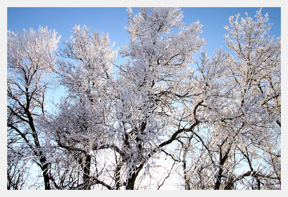 Off to a good start. Weather here for January has been exceptional. Above normal temperature and little snow. It was another week of foggy which equals beautiful hoar frost. This week we have a variety of shots. A bit of frost. Some of Saskatchewan’s beautiful skies. We did a bit of clean up burning so I was able to get some shots of the fire. A few shots from a trip to the city. Not sure what the men were creating in the park but there is a “Frost” festival coming up so I’m guessing it pertains to that. A pair of gloves didn’t make it home. A horse in a store! The Chinese restaurant we visited still had their Christmas tree up. Off course the Pups show up in this weeks lineup. Looking forward to collecting next weeks shots. 50 weeks to go. Can I make it? Enjoy this collection. Click on the image and then right click to move thru the gallery.