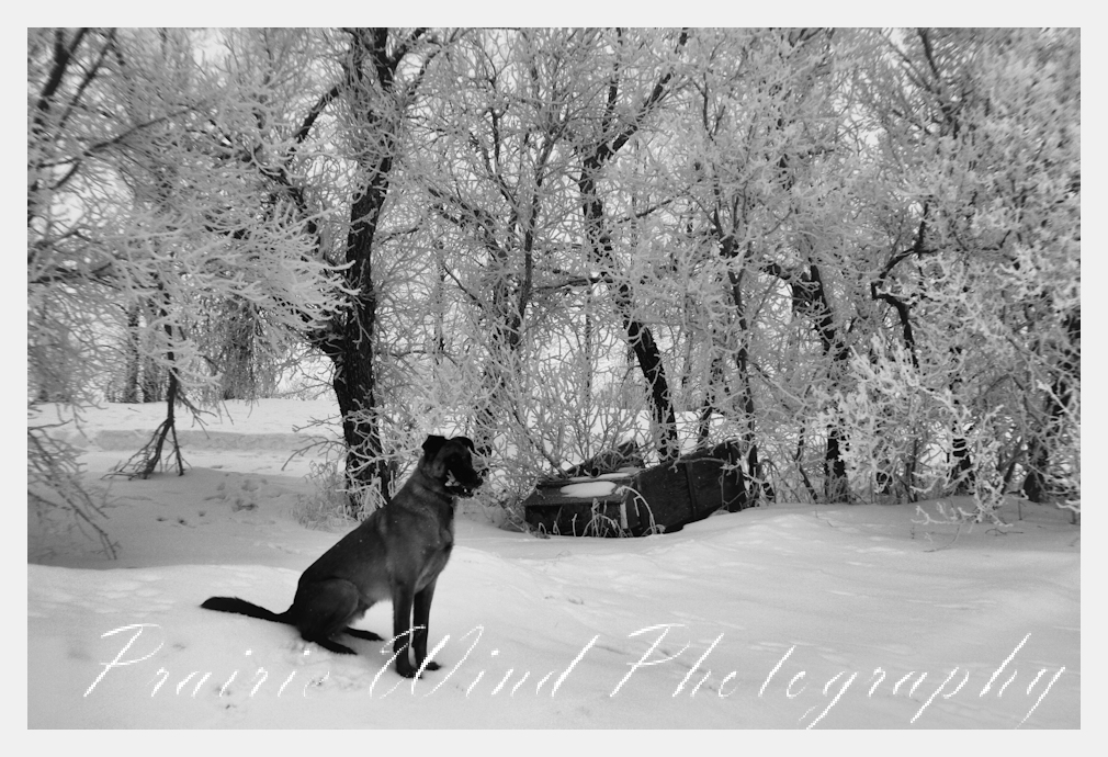Mother Nature provided another week of beautiful frost. I wasn’t going to take more photos but …. like crocuses you can never has too many. I had a model for a few of the shots. She loves the winter weather. I also caught a furry white rabbit that had escaped from the toy box. She and I had fun and the pups joined in for awhile. Speaking of pups, there is a new pup in the kennel. Meet Pips. I’m sure you will be seeing more of her. One morning the the sun rise was spectacular and I had my camera handy. It was posted on my Facebook page and received many likes. There are other images that I capture during the week. All without leaving the farm. Hope you enjoy all. Click on the image and then right click to move thru the gallery. Comments are always welcome.