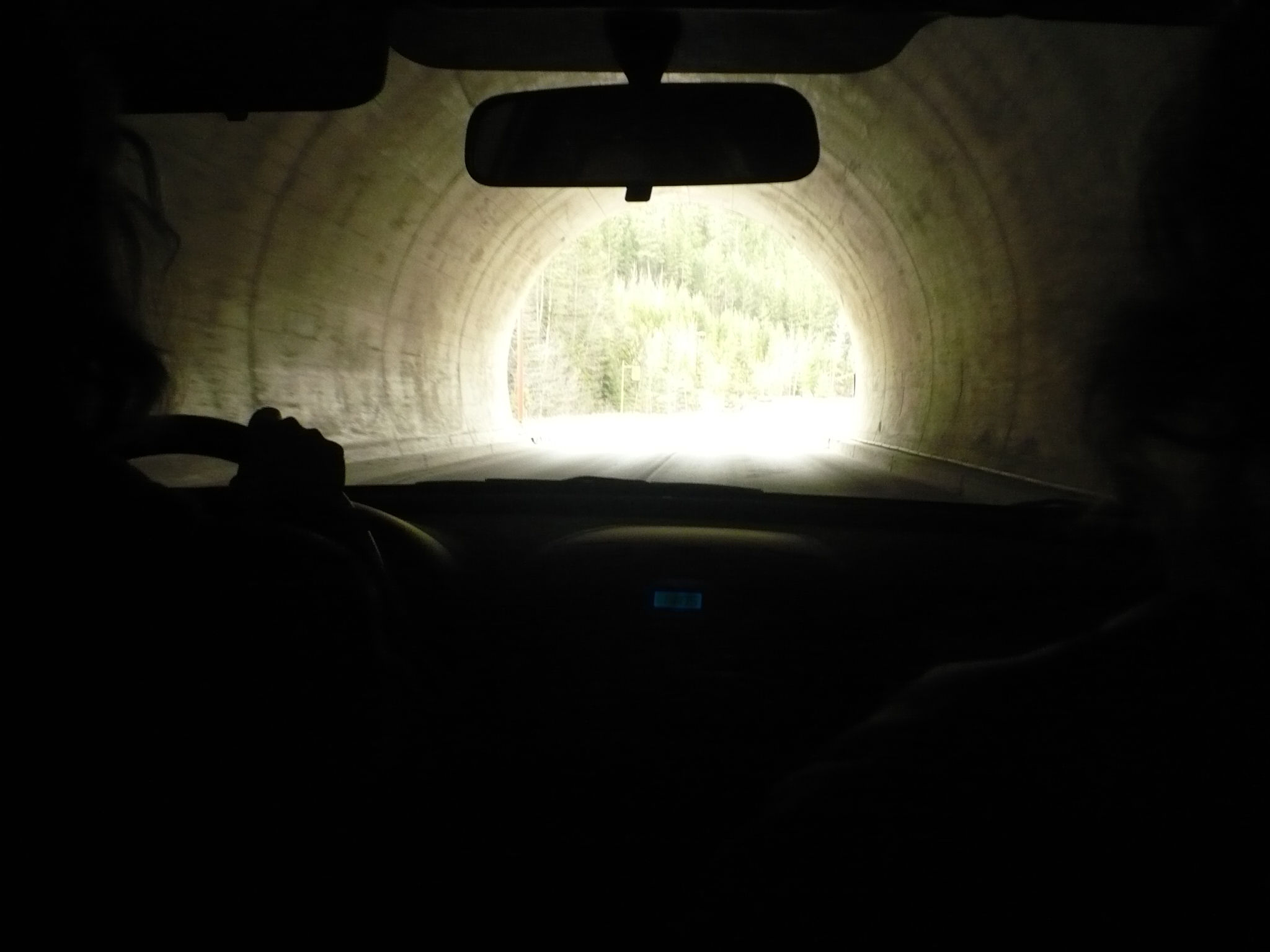 There is light at the end of the tunnel! Travelling thru one of the many tunnels in the Canadian Rockies. Four girls on an adventure. Was fantastic.